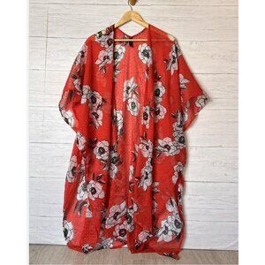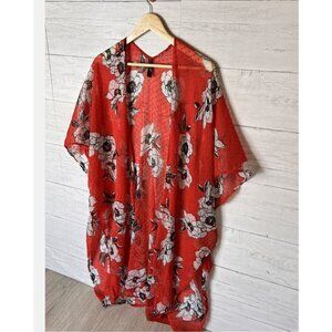 Lane Bryant Kimono Womens One Size Red Sheer Swiss Dot Floral Flowy Lightweight