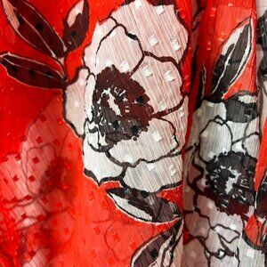 - Lane Bryant Kimono Womens Red Sheer Swiss Dot Floral Flowy Lightweight