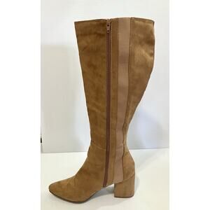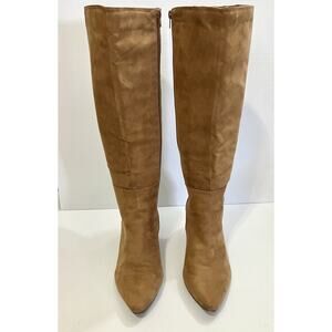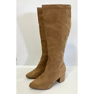 Lane Bryant Knee High Boots Sz 9.5W Faux Suede Tan Brown Pointed Toe Wide Calf
