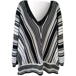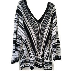 Lane Bryant Knit Blouse Size 26/28 Black/White Stripe V Neck 3/4 Sleeves