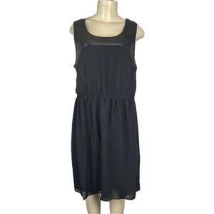 ITEM: Lane Bryant L Black Faux Leather Detail Scoop Neckline Zip Back Above Knee Dress
