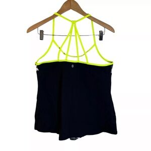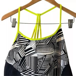 Lane Bryant LIVI Active Top 14/16 Black and White Abstract Lime Green Straps