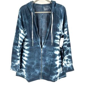 Lane Bryant LIVI Zip Front Tie Dye Hoodie Blue and White Size 14 / 16 NWT