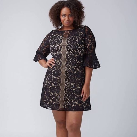 Lane Bryant Lace Bell Sleeve Flounce Dress Size 28