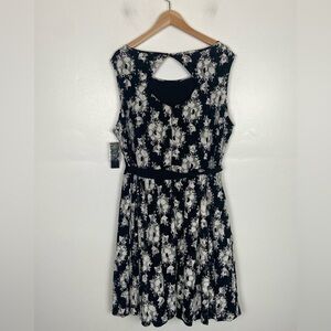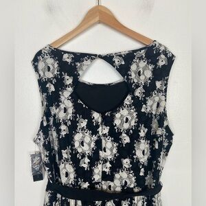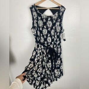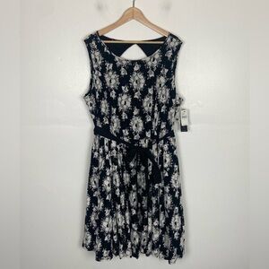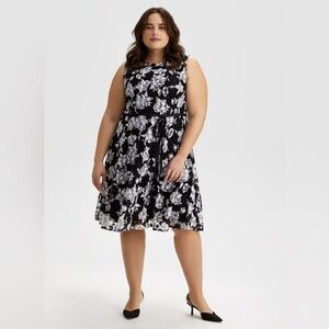 Lane Bryant Lace Floral Midi Dress Size 24 Color Black & White Belted Pleated
