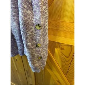 Lane Bryant Lavender White Button Chunky Knit Short Sleeve Cardigan Sweater Size 26/28 nwt pit to pit 33” length 28” (0658)