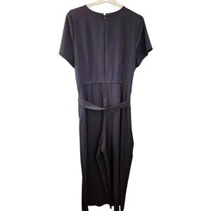 A great "one and done" piece, this jumpsuit is a comfortable, polished look! Detacheable belt, side pockets and an elongated keyhole cut out at the neckline.