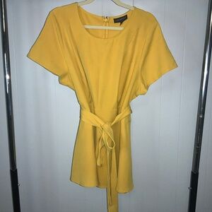 Lane Bryant Lena golden yellow flutter sleeve peplum top Sz 16 self tie waist