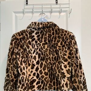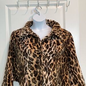 This short plush animal print jacket is so soft! It’s a fun addition to any closet. Wear it with skinny jeans, slacks or a pencil skirt. It has 3/4 length sleeves full sleeves and three cloth-covered buttons. It’s funky chic and belongs in your fabulous wardrobe. 100% polyester