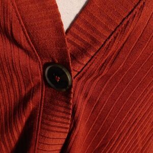 Stylish New with tags burgundy long sleeve cardigan. Features a button-up front. Size 26/28 with a pit to pit measuring 28" and a length of 43". Perfect for layering.