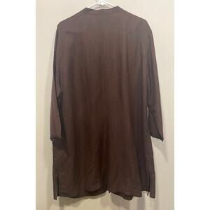 Lane Bryant Linen Blend Brown Tunic Button Up 3/4 Length Sleeves Sz 18/20