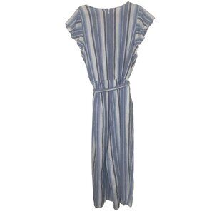 Lane Bryant Linen Blend Crop Jumpsuit Womens Size 22 Blue Striped Pockets wide L