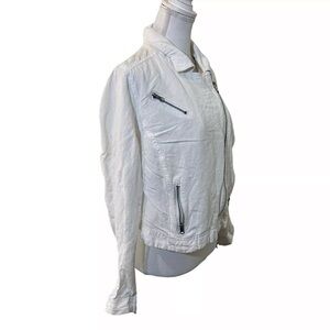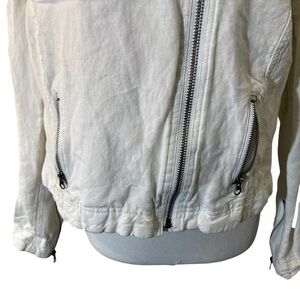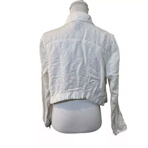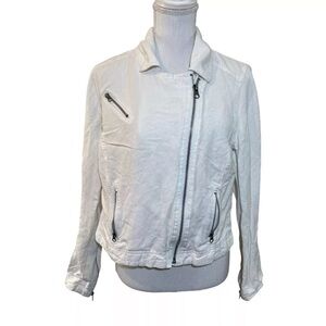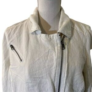 Lane Bryant Linen Blend White Jacket Size 16 Collared Full Zip Knit Trim Pockets
