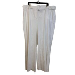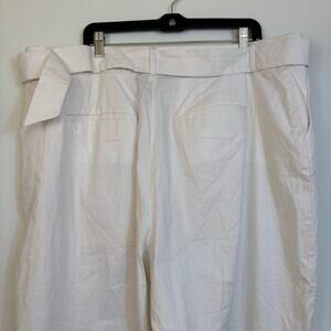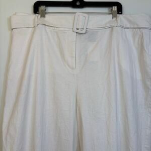 Lane Bryant Linen Blend Wide Leg High Rise Pants Size 20 Belted White Relaxed