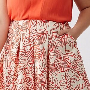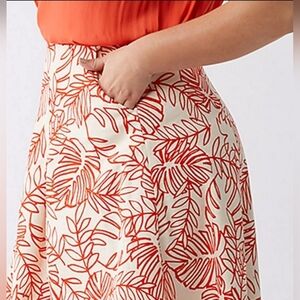 Lane Bryant Linen Cotton Women's orange beige Floral Skirt Size 24 Plus