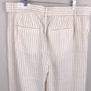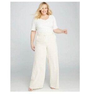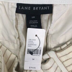 Lane Bryant Linen Pinstripe Trousers High Rise Wide Leg Belted Flare Pants NEW