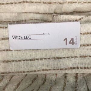 NWT Lane Bryant Women's Striped Wide Leg Tan Cream Belted Trouser Flare Pants 14