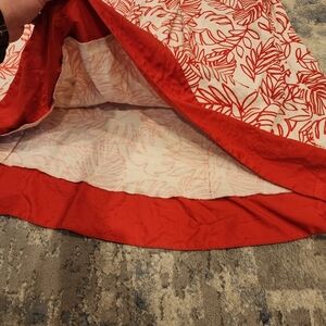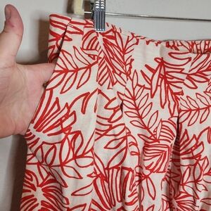 Lane Bryant Linen-blend Orange Red Cream Tropial pleated skirt. Size 22