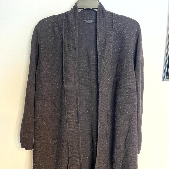 Lane Bryant Long Length Cardigan sweater size 26/28 Black w/ Pink & Blue speckle