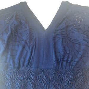 Lane Bryant Long Maxi Gown 14/16 Navy Lace Mother of Bride Deep V Cold Shoulder