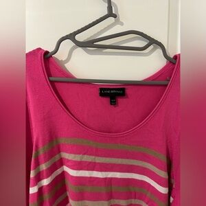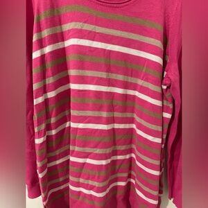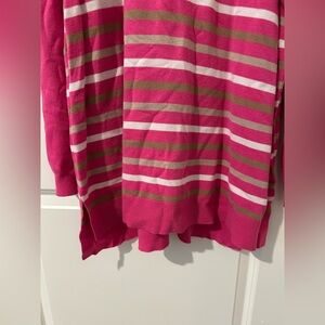 Pink, white and tan stripe sweater from Lane Bryant. Size 18/20. Long in length. 24” Ptp with stretch