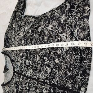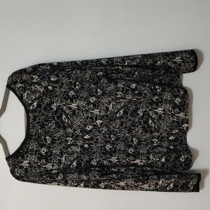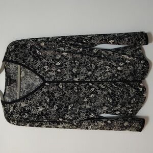 Lane Bryant long sleeve V neck black and white floral pattern blouse