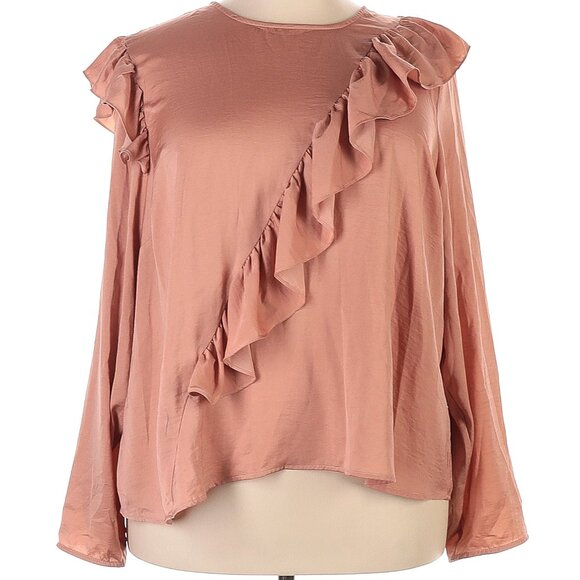 Lane Bryant Long Sleeve Ruffle Pink Blouse Size 20