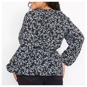 Lane Bryant Long Sleeve Ruffled Split Neck Button Blouse