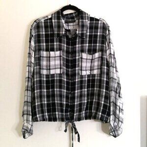 Lane Bryant Long-Sleeve Contrasting Plaid Crop Shirt Size 18 (=2X)