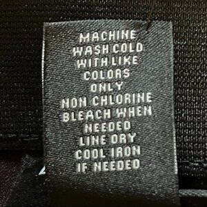Fabric is a polyester, rayon, nylon, and spandex blend.