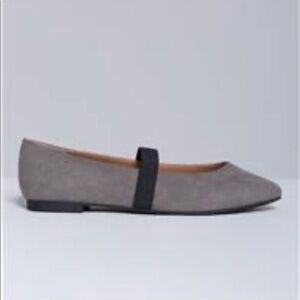 Faux suede flat with an almond toe (not too round, not too pointed).