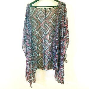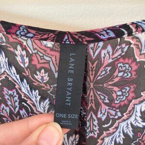 Lane Bryant Medium-Sleeve Chiffon Overpiece OneSize Patterned Blue Pink Plus