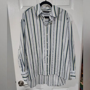 Lane Bryant Menswear Stripe Relaxed Button-Down Boyfriend Shirt in Size 22/24 3X