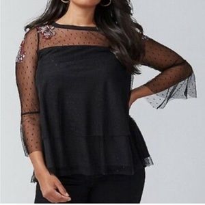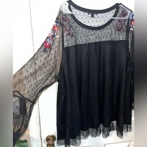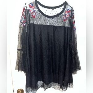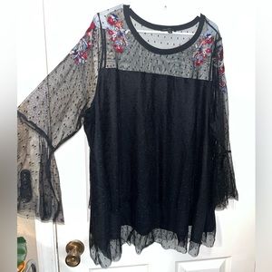Lane Bryant Mesh Embroidered Black Blouse Sz 26/28