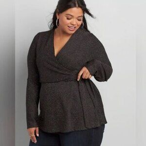 Lane Bryant | Metallic Sparkle Faux Wrap Tie Blouse | Multicolored | 14/16 (1X)