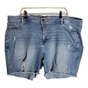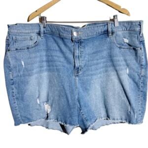 Lane Bryant Mid Rise Girlfriend Distressed Relaxed Denim Shorts raw Hem Plus 24