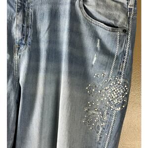 Lane Bryant Wm Sz 28 Embellished Pearl and Rhinestone Light Wash Cropped Jeans