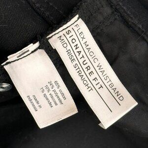 These Lane Bryant jeans offer a comfortable flex magic waistband and a signature fit, tailored in a mid-rise straight-leg style. Crafted primarily from cotton, these black jeans provide both durability and a sleek look. They are an excellent addition to a wardrobe, blending comfort with a classic design.