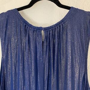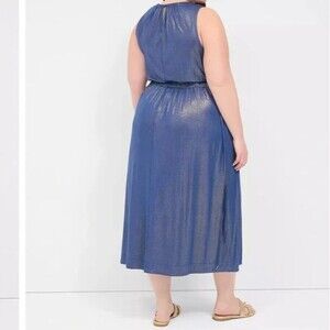 Lane Bryant Midi Dress Plus 30/32 Blue Gold Foil Shimmer Glam NYE Holiday Event