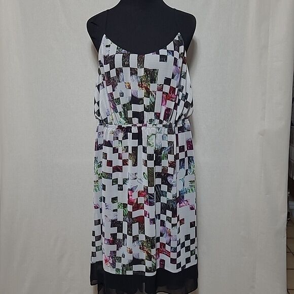 Lane Bryant Midi Dress Sleeveless Square Print Chiffon Multicolor 18/20