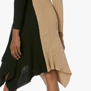 NWOT asymmetrical hem Black and Tan Mock Neck sweater dress