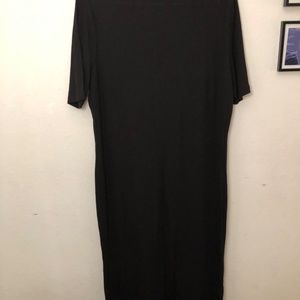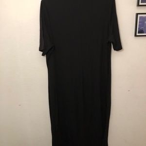 This black dress is lightweight and soft! It is styled like a Bodycon dress so it will hug your frame more than other dresses. It is very comfortable and flattering. It has a softly ribbed design and a mock neck. It has no pockets.