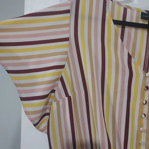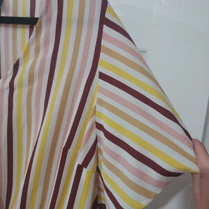 Lane Bryant Mulitcolor Stripes Short Sleeve V-Neck Smocked Waist Blouse Size 20