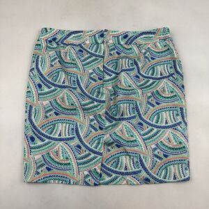 Add a pop of color to your wardrobe with this Lane Bryant mini pencil skirt. The geometric scalloped pattern and stretchy cotton blend material make it comfortable and perfect for any occasion, whether it be a casual day out or a business meeting. The zip closure and machine washable fabric make it easy to wear and care for. This skirt is a size 24 and fits into the plus size category. It is ideal for women who want to showcase their unique style and personality. This colorful skirt is a great addition to any fashion-forward wardrobe. Its versatile design makes it suitable for different occasions, from casual outings to business meetings. The stretchy material ensures a comfortable fit, while the machine washable fabric makes it easy to care for. The skirt is perfect for those who want to make a statement with their fashion choices.