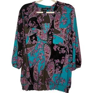 Lane Bryant Multicolor Sheer Paisley Print 3/4 sleeve Blouse Size 18/20