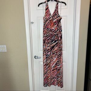 Lane Bryant Mutli-Colored Halter Maxi Dress Size 14/16 Tie Front Sash