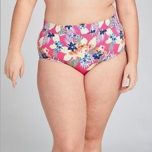 A printed swim brief with a contrasting covered elastic waistband. Lightweight power mesh lining is less restrictive and provides supportive, smoothing coverage and helps your suit stay in place. Full coverage.