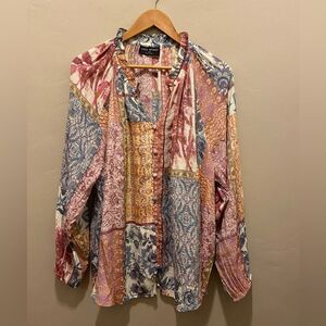 Lane Bryant NWOT multi color patchwork detail dolman sleeves blouse 22/24