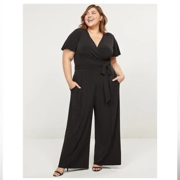 Lane Bryant NWT Black Faux Wrap Tie Waist Wide Leg Jumpsuit | Size 26/28