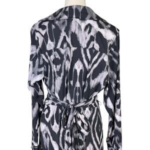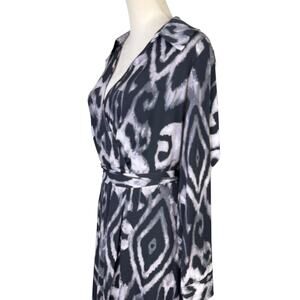 Lane Bryant NWT Black Gray Ikat Print Long Sleeve V-neck Mini Faux Wrap Dress